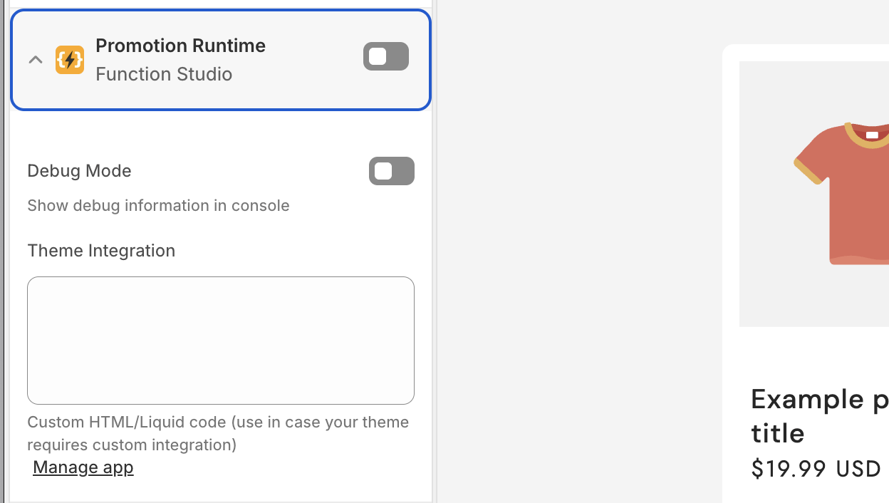 Locate Promotions Runtime and paste the code into Theme Integration field: